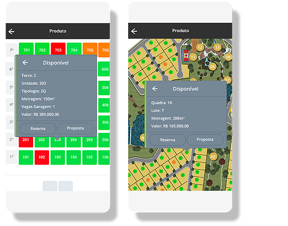 Permite ao corretor consultar o espelho de vendas de um determinado produto, visualizar as unidades disponíveis e solicitar automaticamente reservas pelo aplicativo ou painel web.
