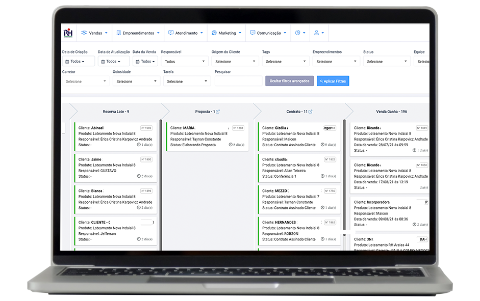 O processo de vendas da RH Empreendimentos era feito manualmente através de planilhas, desde a reserva do lote, preenchimento de proposta, ficha cadastral e envio de documentos.