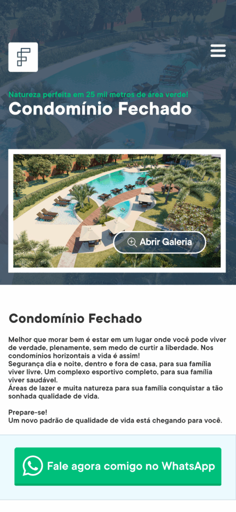 No aplicativo além de exibir imagens e informações detalhas sobre o imóvel, o corretor consegue gerar um Hotsite, uma página atrativa e personalizada, com todas as informações importantes de cada empreendimento, planta, fotos, metragem e muito mais.